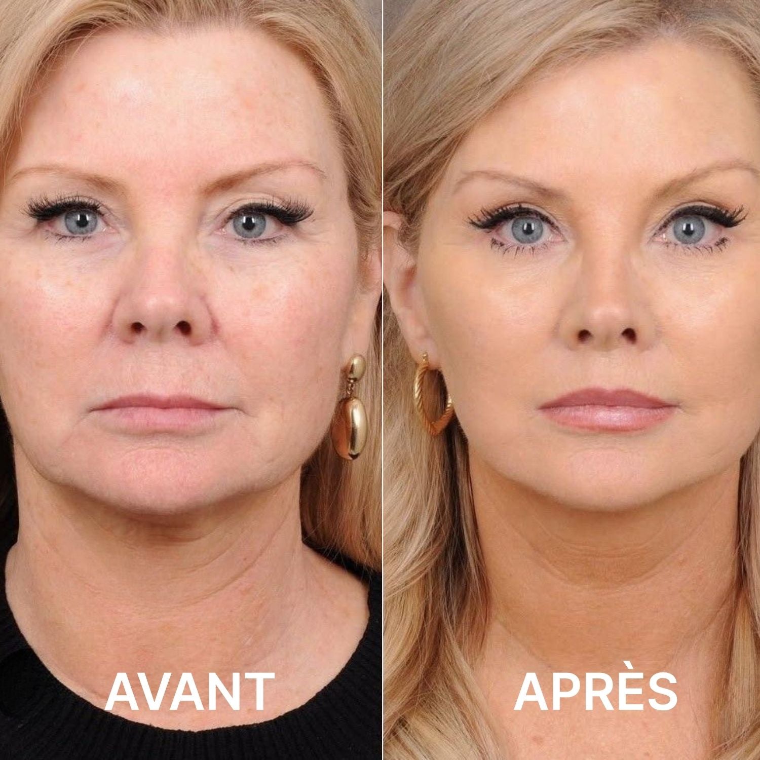 La peau retrouve éclat et uniformité ; elle paraît immédiatement lissée, repulpée et perfectionnée.