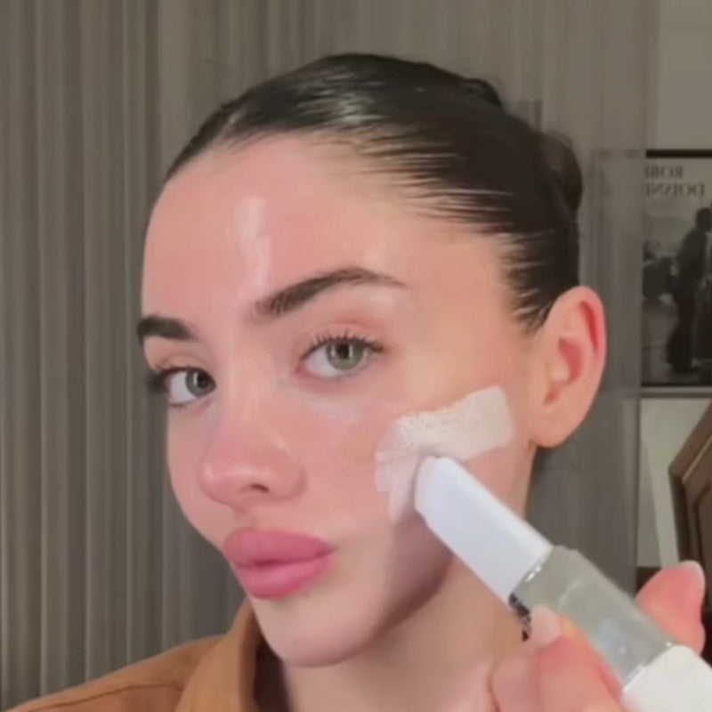 Appliquez Chroma Stick™ directement sur le visage, du centre vers l’extérieur, puis estompez avec le pinceau intégré. En quelques gestes, la texture crémeuse se fond à la peau et la teinte blanche initiale se transforme en votre teinte idéale, laissant un teint uniforme, lissé et naturellement lumineux.