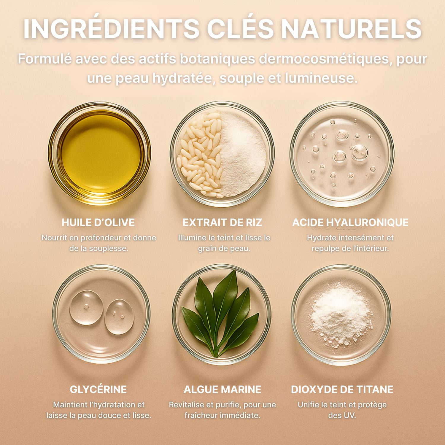 Une formule riche en extraits naturels et en actifs dermo-cosmétiques, pensée pour apporter confort et éclat, même aux peaux les plus exigeantes.