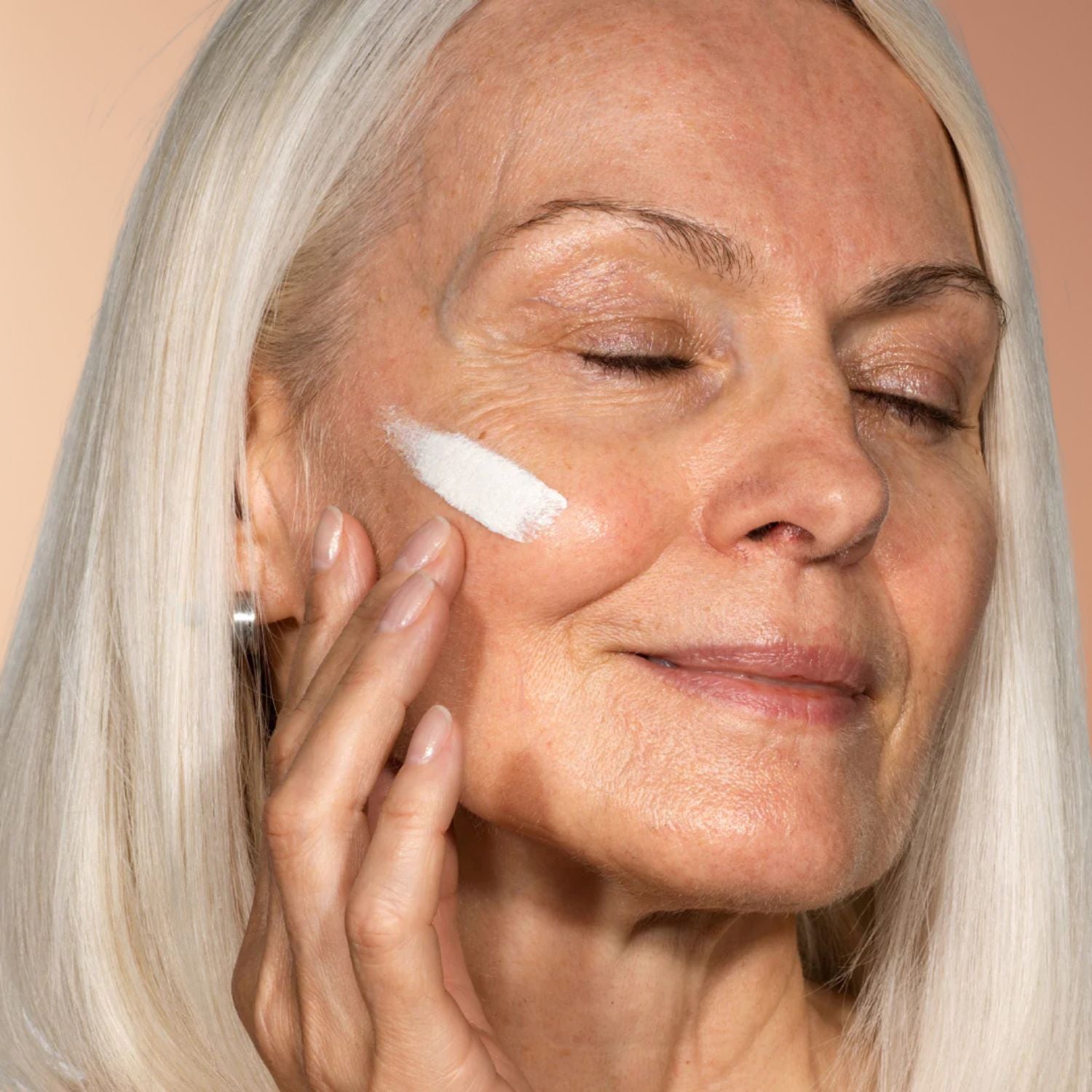 Sa texture légère et hydratante lisse l’apparence des peaux matures, atténue les ridules et les irrégularités du teint, et apporte une luminosité immédiate sans effet masque.